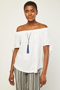 Tie Up Sleeve Bardot Style Top