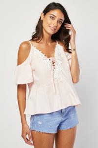 Cold Shoulder Flower Diamante Top