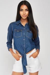 Tie Up Hem Denim Shirt