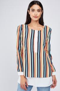 Mix Stripe Long Line Shirt