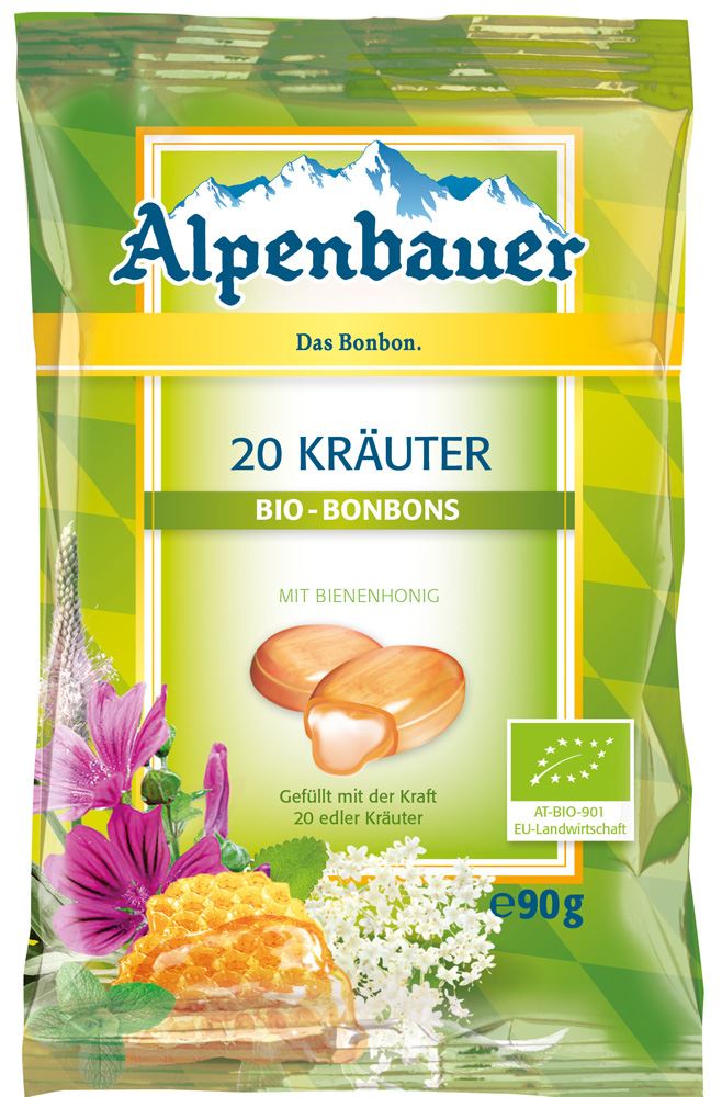 - Alpenbauer Cukierki z nadzieniem o smaku ziołowym BIO, 90 g