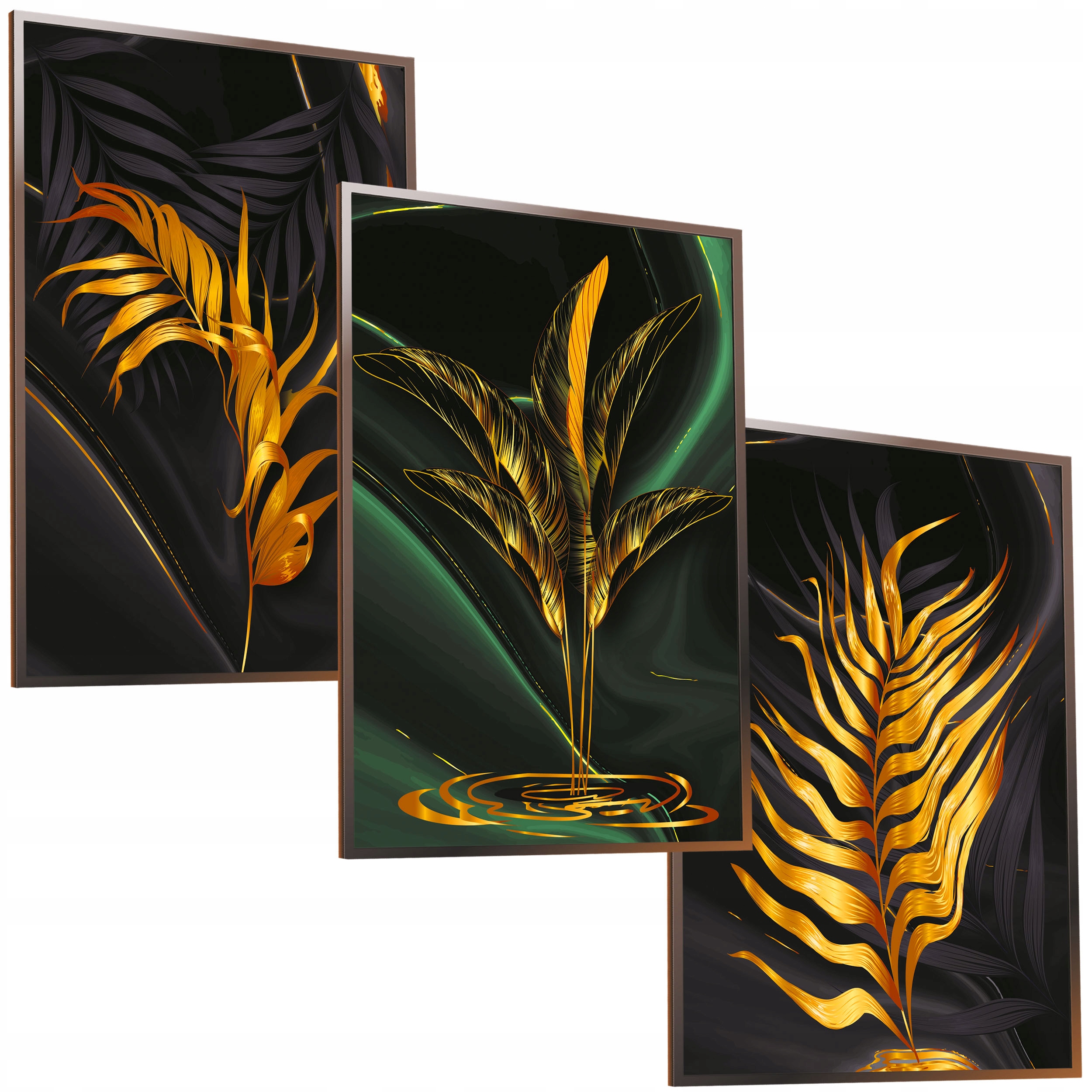 50x40 Obrazy Ramie Plakaty Ramka Złote Liście Liść