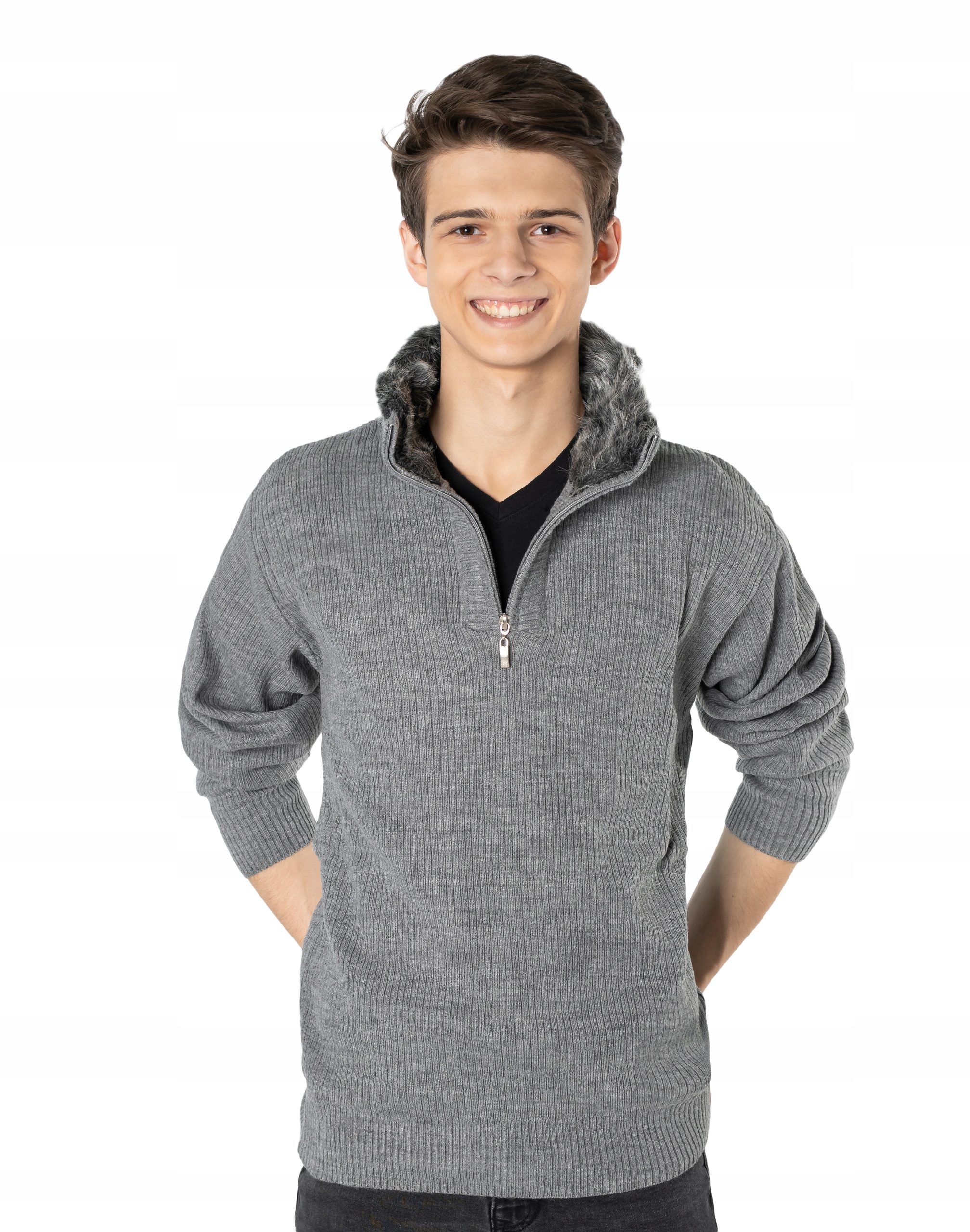 Ciepły Sweter Męski Rozsuwany ze Stójką 2052-2 XXL