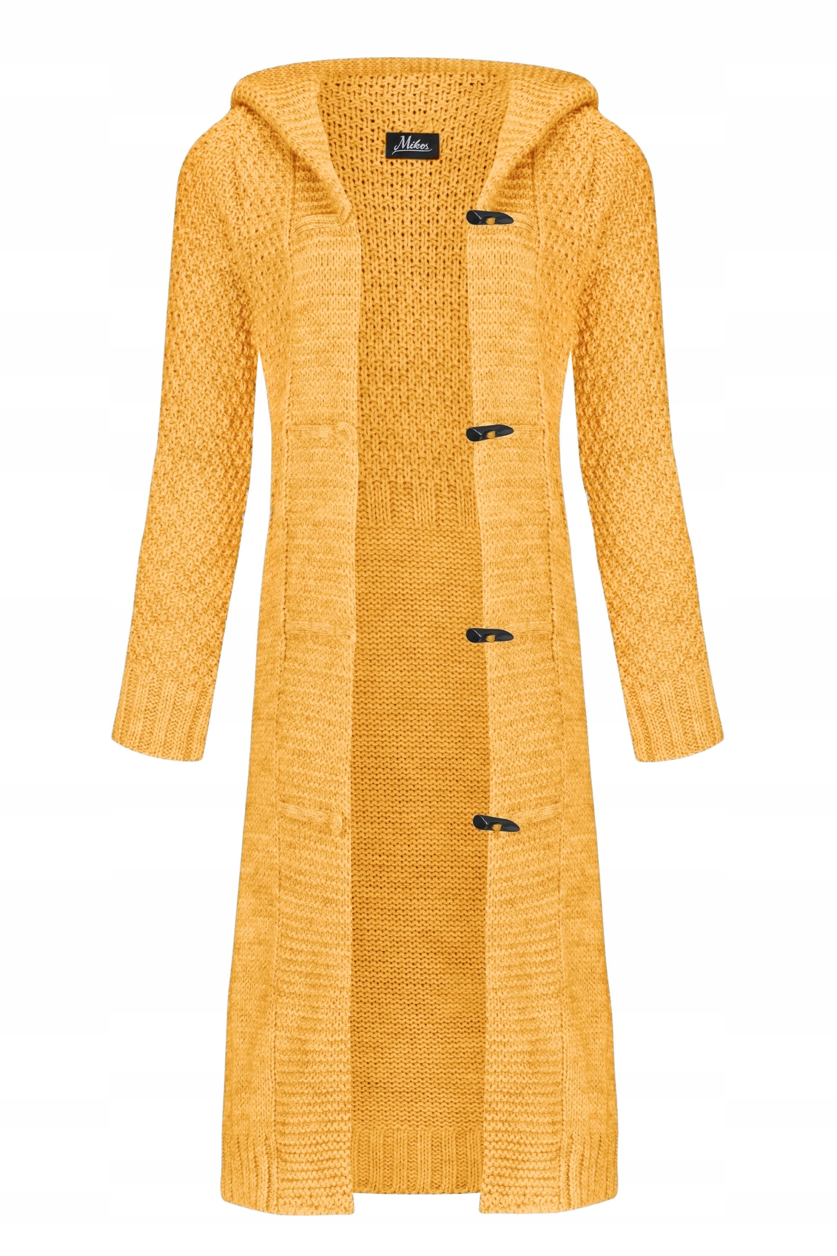 Damski długi sweter kardigan z kapturem warkocz