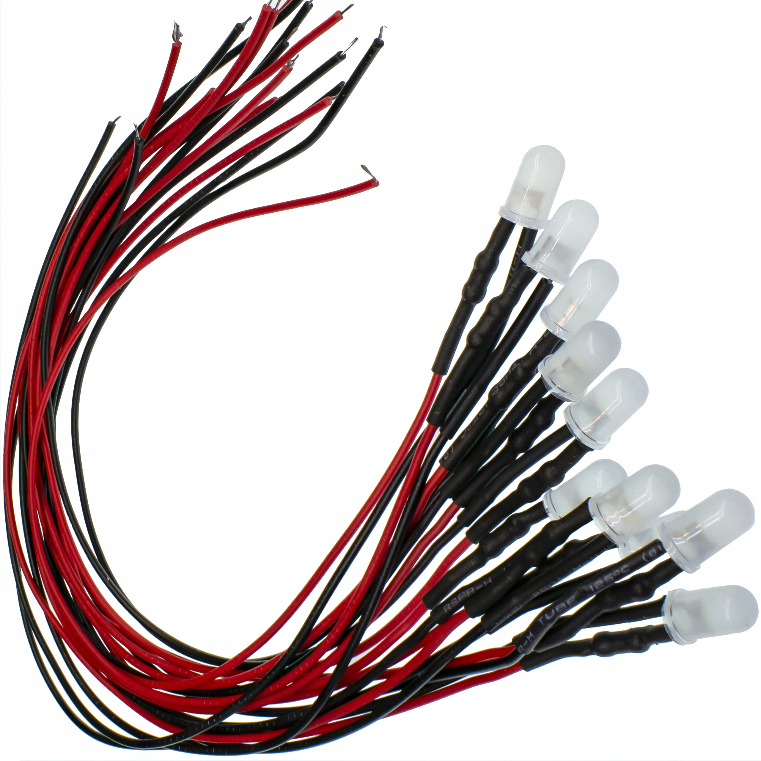 Diody Led 12V Matowe 5mm 8 Barw przewód 20cm 10szt
