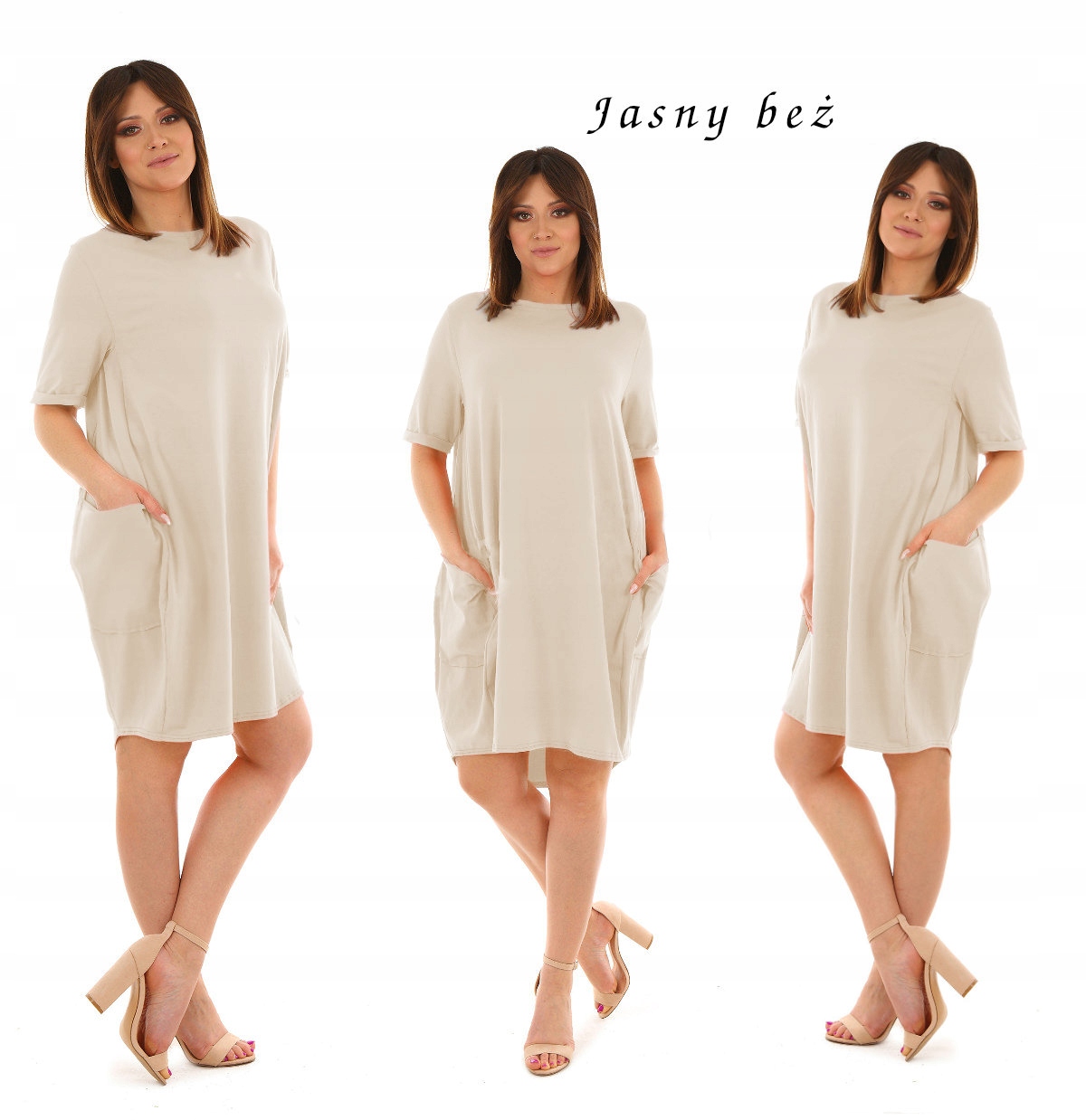 F403 Krótki rękaw sukienka Oversize z kieszeniami