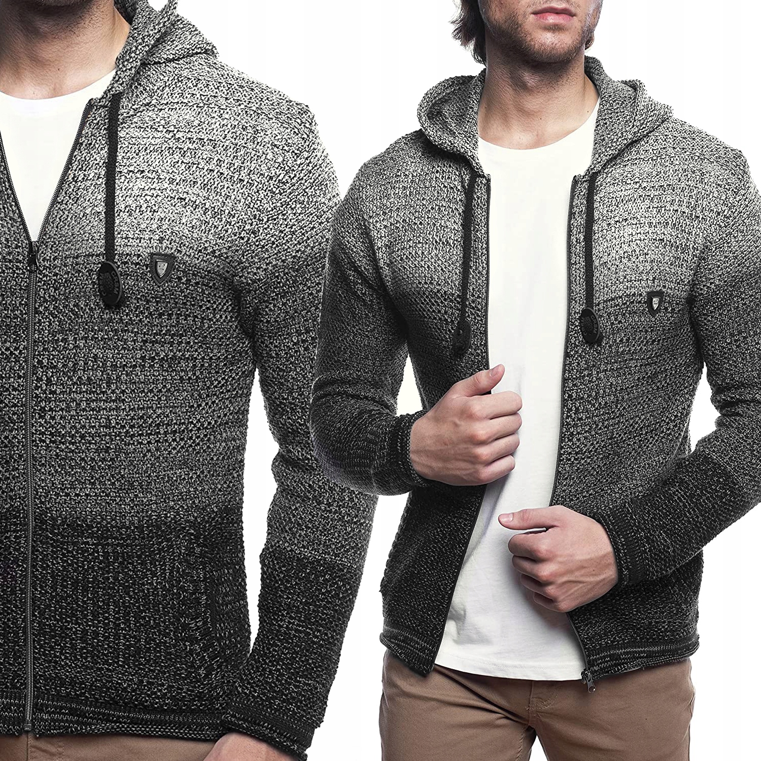 Kardigan Sweter z kapturem Cieniowany Melanż zamek