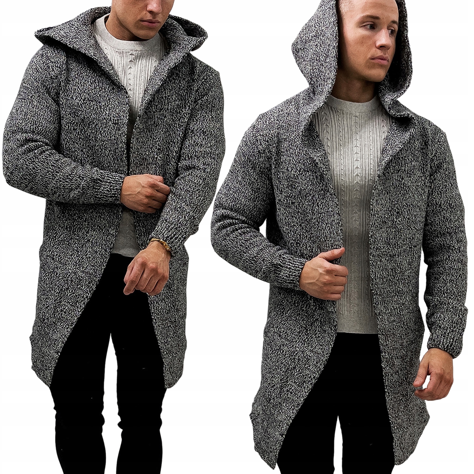 Kardigan z kapturem Narzutka Sweter Bluza Melanż