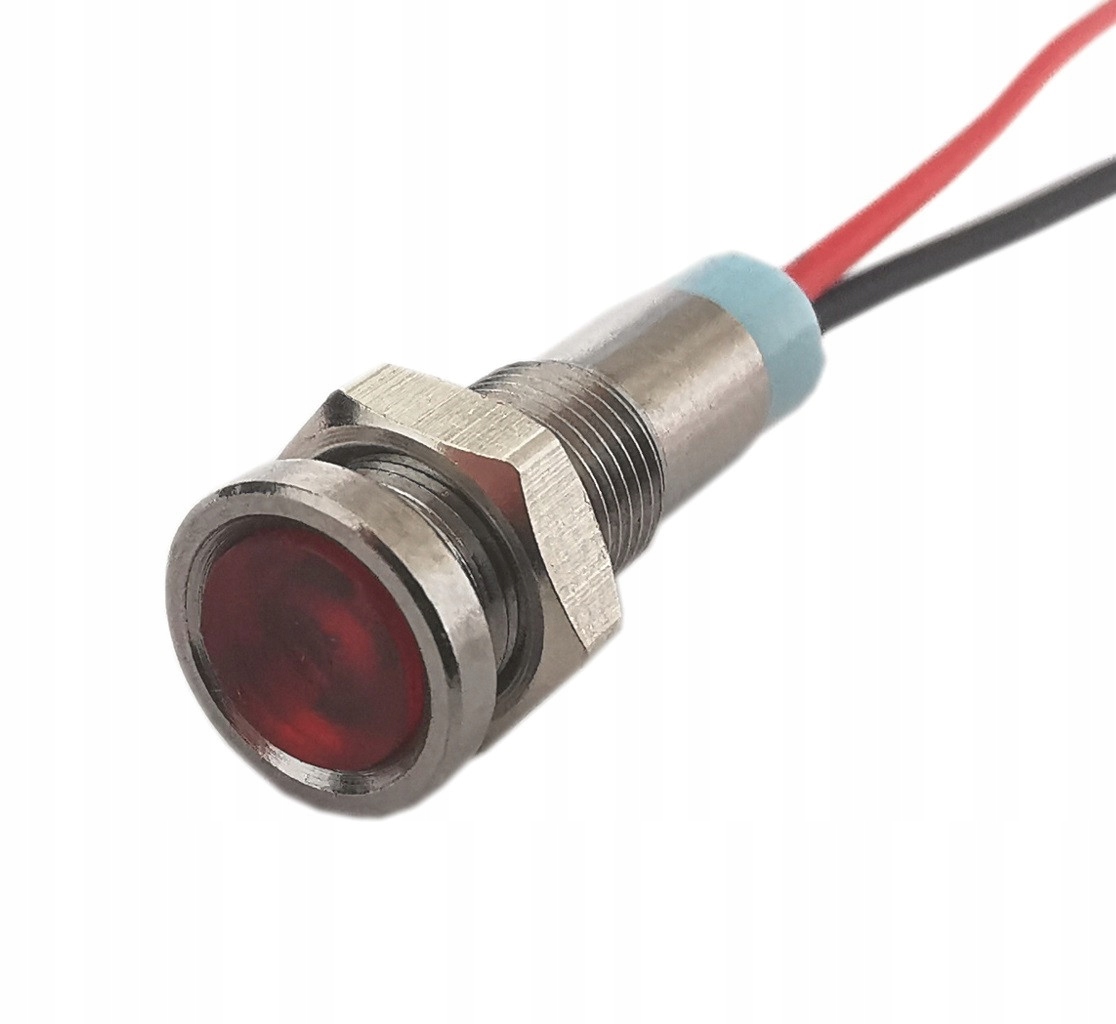 Kontrolka Led 8mm 12V DC Czerwona Metalowa