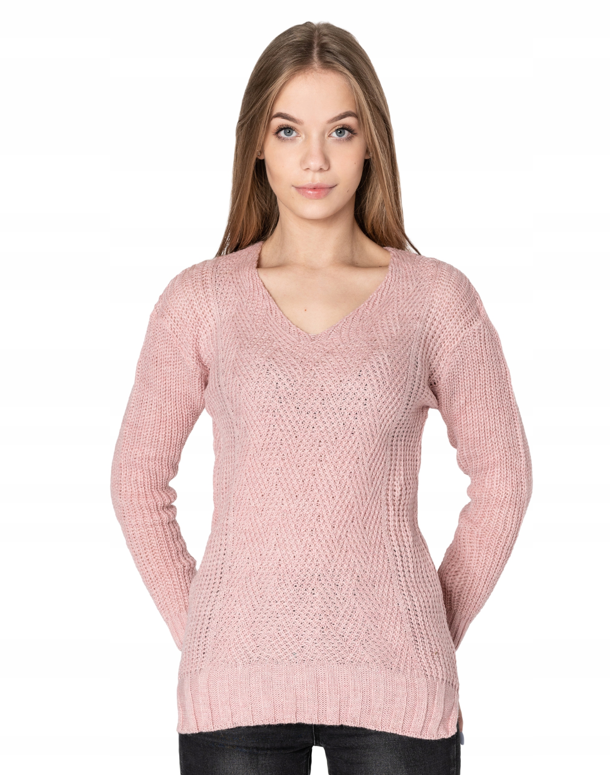 Lekki Sweterek Damski Sweter Serek SD02-02 pudrowy