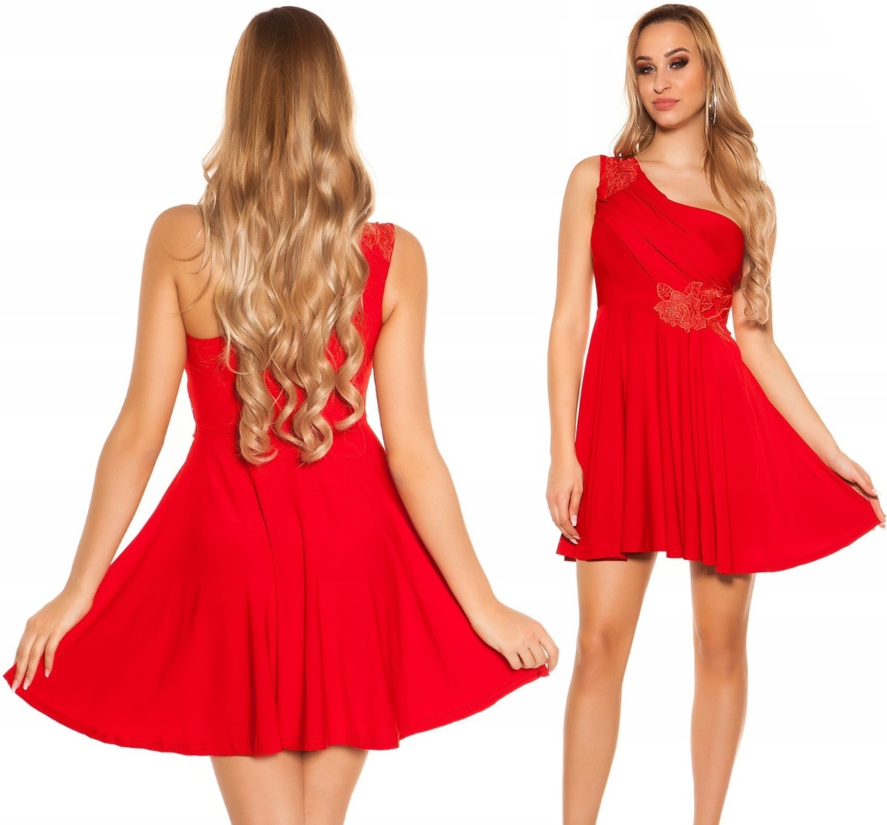 N396 Czerwona Dziewczęca Sukienka Na Wesele 36/S