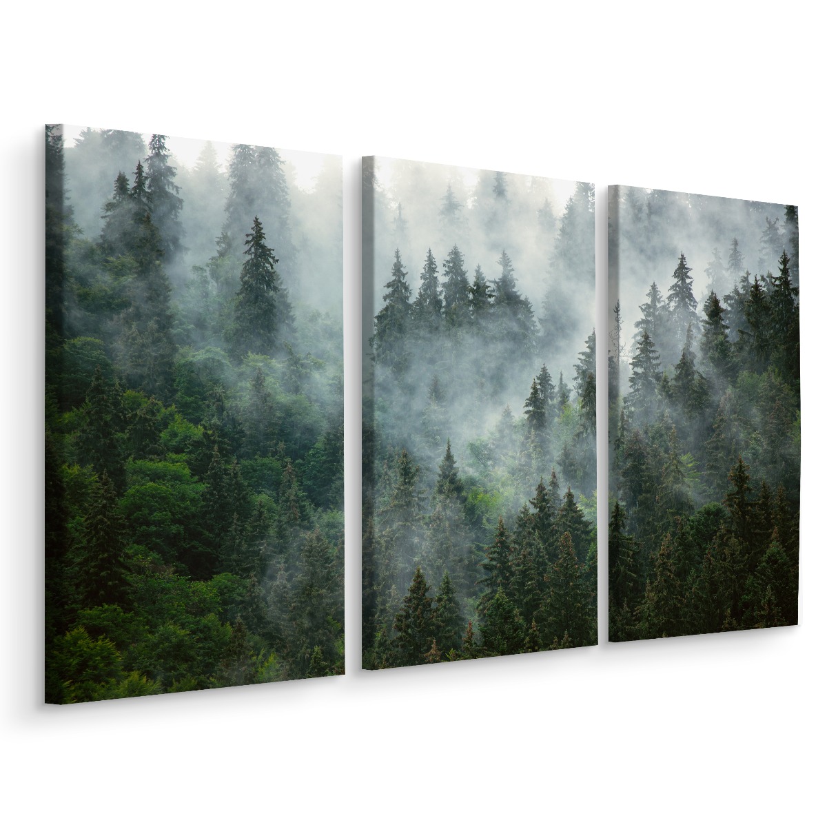 Obraz Tryptyk Las we Mgle Drzewa Natura 3D 150x100
