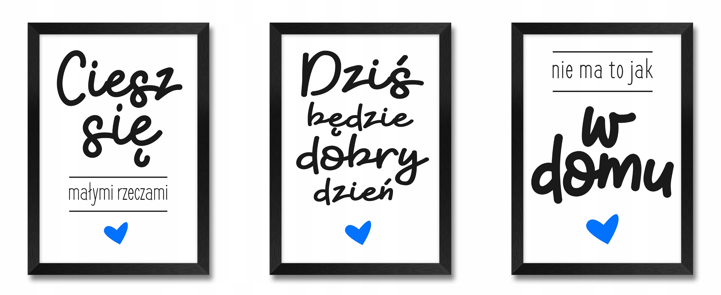 Obrazy na ścianę z cytatami w czarnej ramie 3xA4