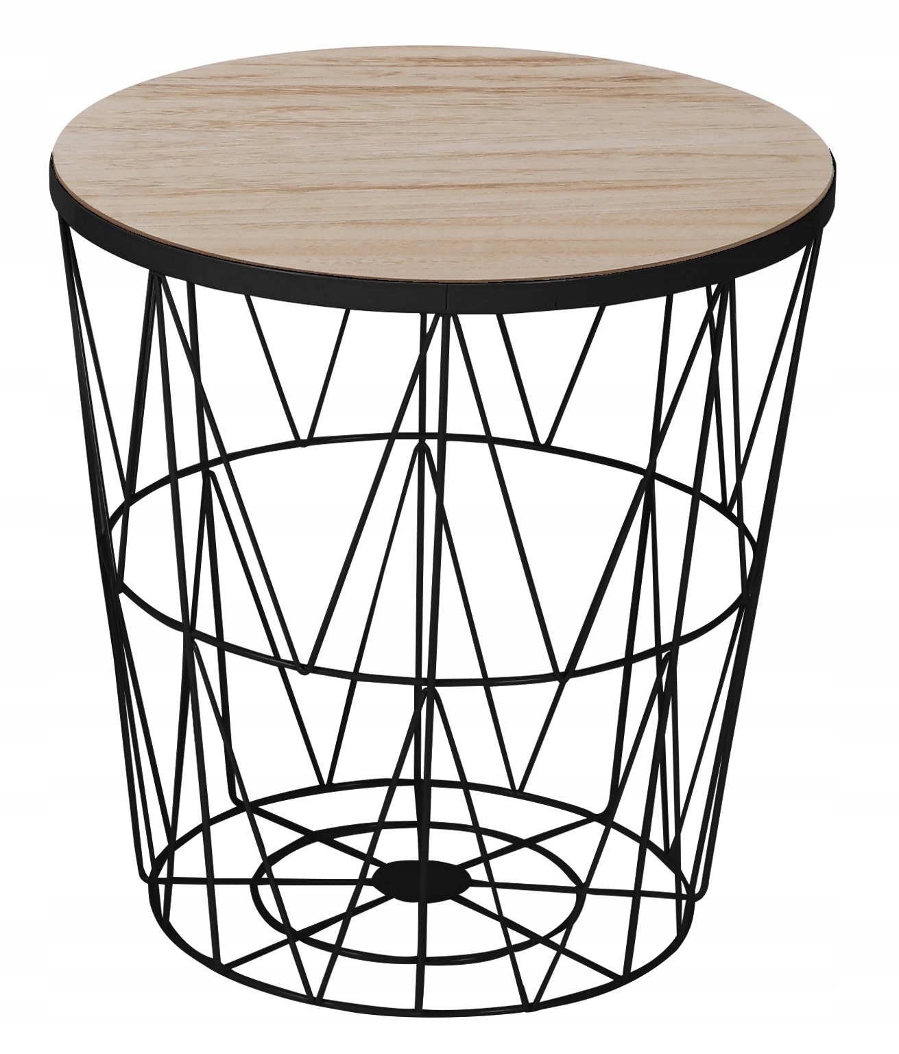 Stolik Kawowy Okrągły Czarny Kosz Ława Space
