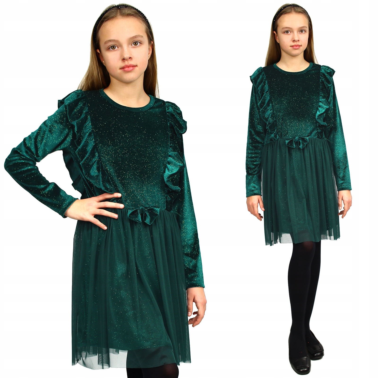 Sukienka Butelkowa Zieleń Welur Tiul 146