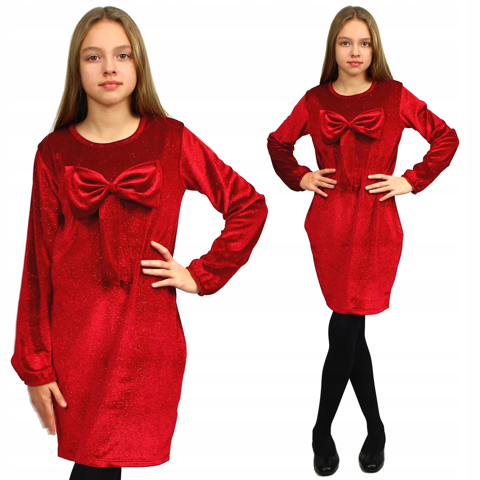Sukienka Czerwona Welur Tuba Kokarda 116