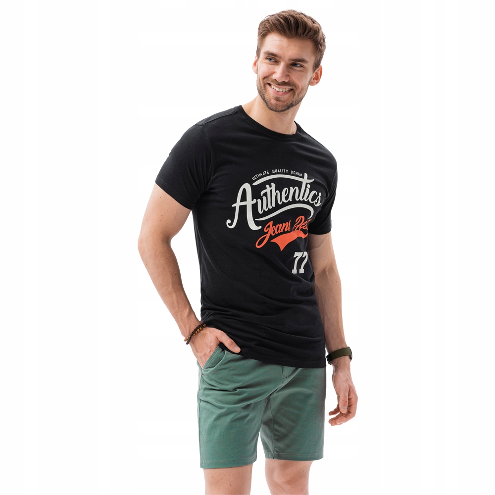 T-shirt męski z nadrukiem S1434 V-22C czarny XXL