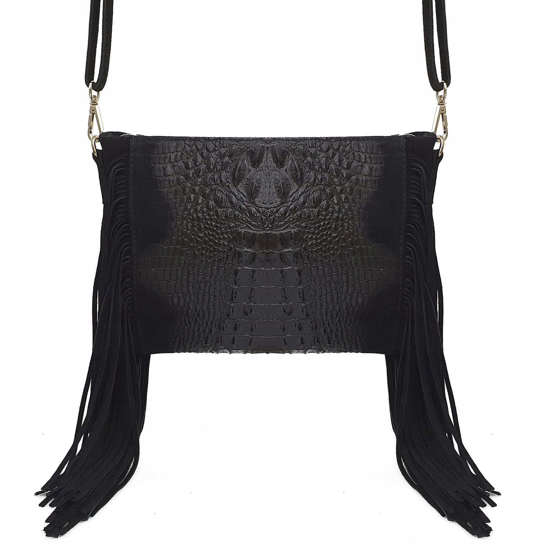 Torebka zamszowa listonoszka z frędzlami Czarna