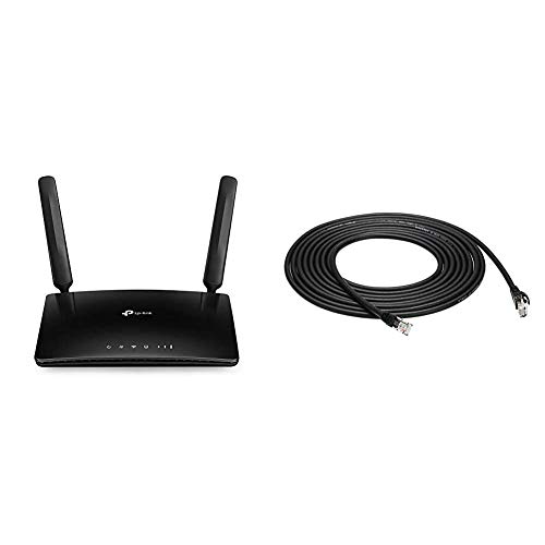 - TP-Link TL-MR6400 WLAN Cat4 + N300 Mbps 4G LTE Router (150 Mbit/s im Download, 300 Mbit/s 2,4GHz), schwarz & Amazon Basics Ethernetkabel Cat6, knickgeschützt, 15 ft/4.6 m, 5 Stück, Schwarz