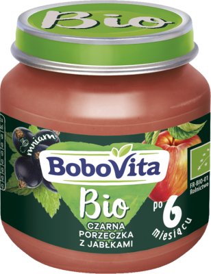 Producent marki BoboVita opisuje Przecier owocowy Bio dla niemowląt: Czarna porzeczka z jabłkami. Produkt utrwalony termicznie - pasteryzowany tak:Produkt dla niemowląt i małych dzieci.Cechy:bez konserwantów, barwników, wzmacniaczy smaku**, bez dodatku cukru - zawiera naturalnie występujące cukry z owoców, **zgodnie z przepisami prawaMarka:BoboVitaNazwa produktu uregulowana prawnie:Przecier owocowy Bio dla niemowląt: Czarna porzeczka z jabłkami. Produkt utrwalony termicznie - pasteryzowanyPozostałe informacje:Unijne logo rolnictwa ekologicznego - FR-BIO-01 Rolnictwo UEPrzechowywanie:Przechowywanie i przygotowanie: