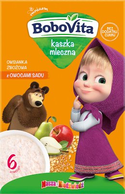 BoboVita kaszka Masha&Niedźwiedź mleczna Owsianka Zbożowa z Owocami Sadu, po 6. miesiącu, 200 g