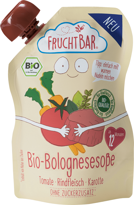 Producent marki Fruchtbar opisuje Sos Bolognese z wołowiną BIO tak:Ekologiczny, szybki w przygotowaniu i smaczny sos bolognese z wysokiej jakości wołowiną, pomidorami, marchewką i bazylią. Stworzony z miłością i myślą o dzieciach tych małych, jak i tych dużych! Przyjazna dla dzieci formuła bez dodatku cukru, wykonany wyłącznie z certyfikowanych składników rolnictwa ekologicznego bez składników modyfikowanych genetycznie, substancji konserwujących, barwników i aromatów, bez laktozy, bez dodatku cukru.