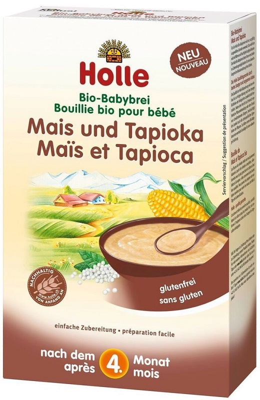 Producent marki Holle opisuje Ekologiczna kaszka kukurydziana z tapioką bezglutenowa BIO tak:NIE ZAWIERA GLUTENU. BEZ DODATKU SOLI I CUKRU. Kaszka przeznaczona dla niemowląt powyżej 4 miesiąca życia do przygotowania z mlekiem matki, mlekiem następnym, z dodatkiem mleka dla niemowląt (krowiego, koziego), napojem roślinnego lub wodą. Przygotowanie i stosowanie: Z MLEKIEM MODYFIKOWANYM: przygotuj 170ml mleka modyfikowanego wg. dołączonej instrukcji, zgodnie ze sposobem przygotowania. Wlej mleko do butelki lub talerza i dodaj 18g kaszki co odpowiada około 3-4 łyżek stołowych, po czym dokładnie wymieszaj do uzyskania jednolitej konsystencji i odstaw do wystygnięcia. Upewnij się, że temperatura jest prawidłowa do podania ok. 37°C. Z MELKIEM MATKI: podgrzej 130ml mleka i dodaj 25g. kaszki co odpowiada około 5 łyżką stołowym, po czym dokładnie wymieszaj, aż do uzyskania jednolitej konsystencji i odstaw do wystygnięcia. Upewnij się, że temperatura jest prawidłowa do podania ok. 37°C. PAMIĘTAJ, w celu zachowania cennych składników odżywczych, nie podgrzewaj mleka matki powyżej 40 °C. NA WODZIE: Zagotuj 200ml wody i pozostaw do ostygnięcia do temperatury poniżej 50 °C, następnie dodaj 25g kaszki co odpowiada około 5 łyżką stołowym, po czym dokładnie wymieszaj, aż do uzyskania jednolitej konsystencji i odstaw do wystygnięcia. Upewnij się, że temperatura jest prawidłowa do podania ok. 37°C. WAŻNE INFORMACJE: Kaszka do spożycia powyżej 4 miesiąca życia. Należy postępować zgodnie z instrukcjami przygotowania. Właściwy stosunek dawkowania zawsze zapewni Twojemu dziecku niezbędne składniki odżywcze. Niewłaściwe przygotowanie może prowadzić do problemów zdrowotnych. Kaszkę przyrządzaj świeżo przed każdym posiłkiem. Zawsze przygotowuj odpowiednią ilość do spożycia. Nigdy nie podawaj ponownie nie zjedzonych wcześniej resztek. Nie podgrzewaj kaszki w kuchence mikrofalowej (ryzyko przegrzania). Nie gotować. Upewnij się, że temperatura jest prawidłowa do podania ok. 37°C. Produkt powinien być tylko jednym z elementów zróżnicowanej diety niemowlęcia.