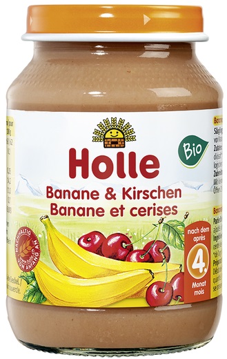 Producent marki Holle opisuje Ekologiczny deserek banan z wiśnią bezglutenowy BIO tak:Deserek owocowy dla niemowląt i małych dzieci BEZ GLUTENU.Przygotowanie i stosowanie:wymieszać zawartość słoiczka. Podawać wymaganą ilość do spożycia. Raz otwarty słoiczek może być przechowywany maksymalnie do 48 godzin, zakręcony w lodówce. UWAGA: pierwsze potrawy należy wprowadzać od małych ilości, stopniowo zwiększając do jednego słoiczka.