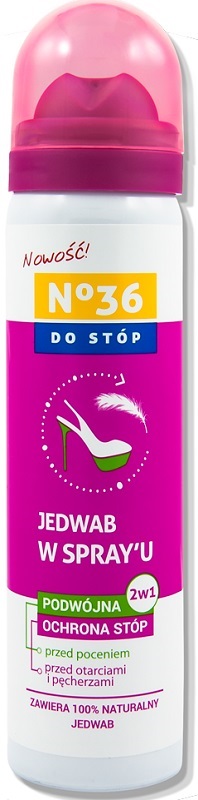 Producent marki Pharma opisuje No.36 Jedwab w sprayu 2w1 tak:• Jedwab marki No.36 gwarantuje podwójną ochronę stóp przed otarciami
