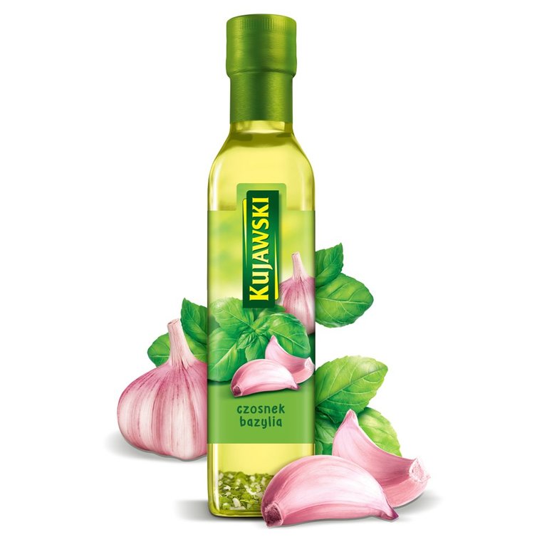 - Kujawski Olej rzepakowy z pierwszego tłoczenia z czosnkiem i bazylią 250 ml