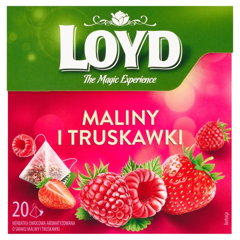 Loyd Herbatka owocowa aromatyzowana o smaku maliny i truskawki 40 g (20 x 2 g)