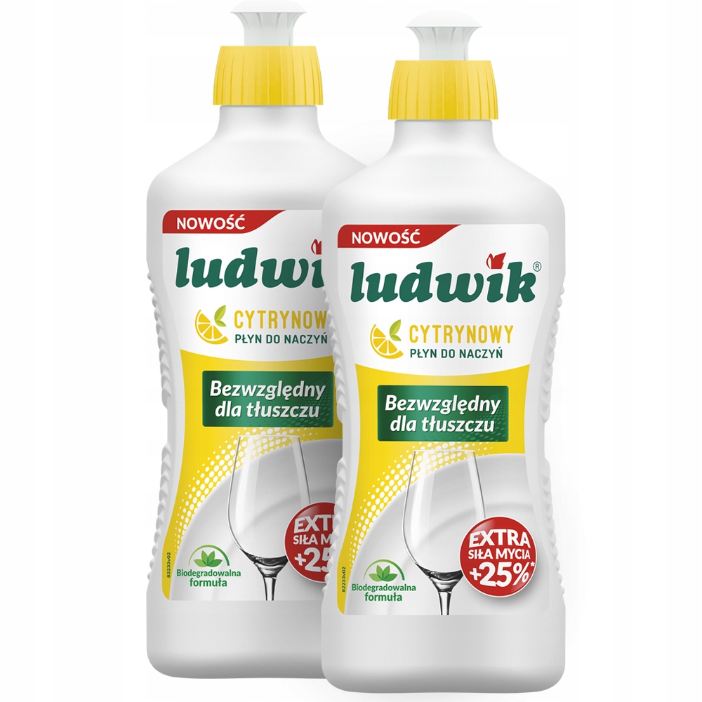 2X Ludwik Płyn Mycia Zmywania Naczyń Cytrynowy 900