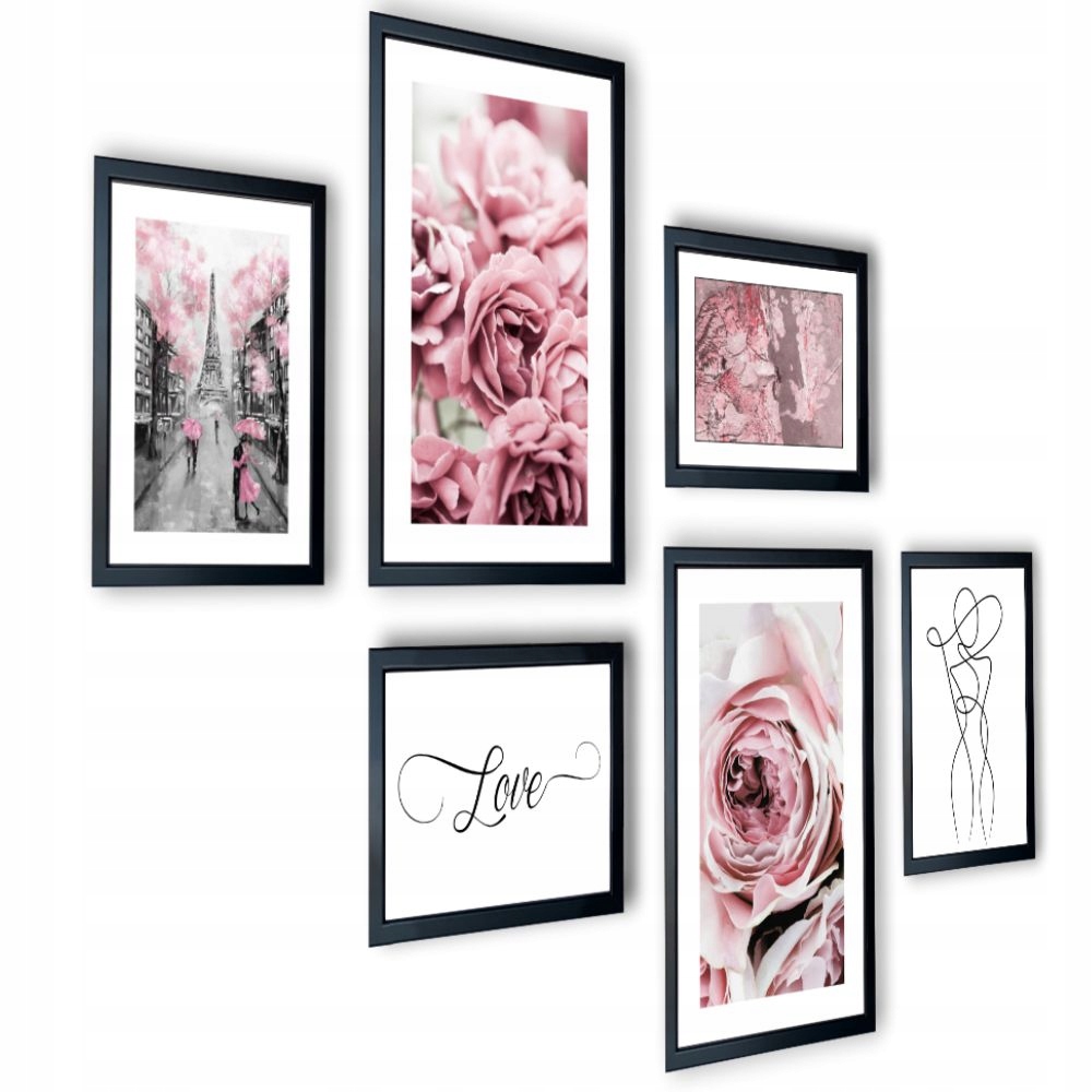 Galeria 6 szt obrazy w ramach róże Paryż 225x91