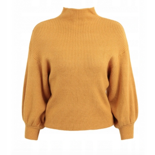 Golf Sweter-ek Damski Ciepły Miły Brązowy Prążki