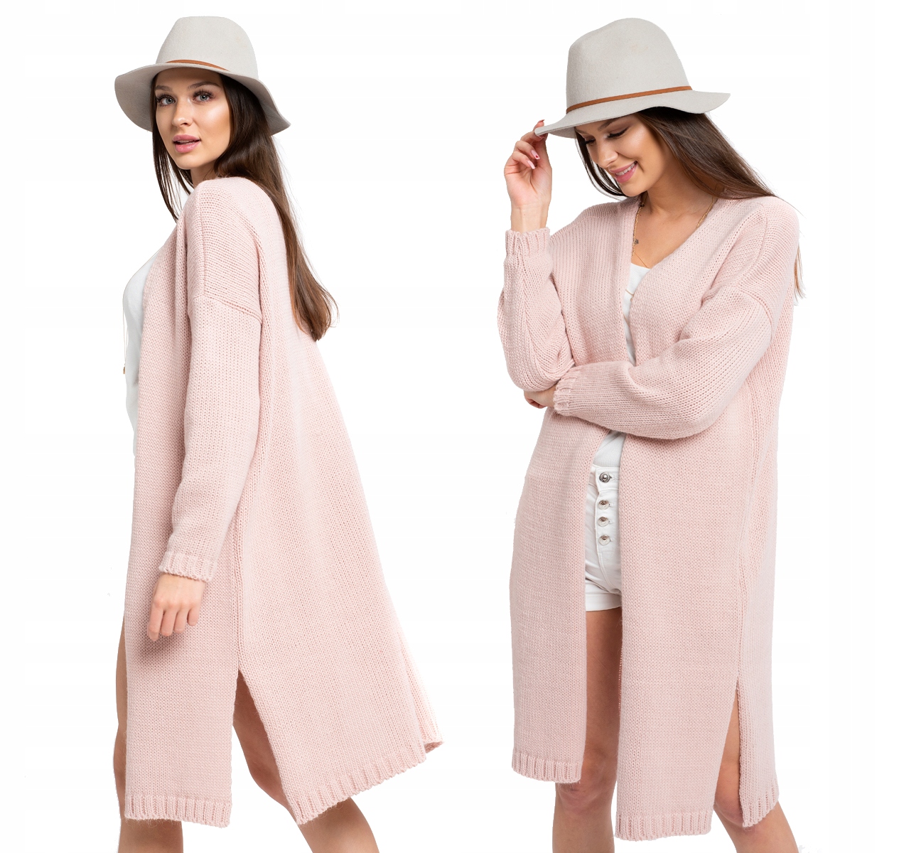 Margo Długi Ciepły Sweter Kardigan Płaszczyk Wełna