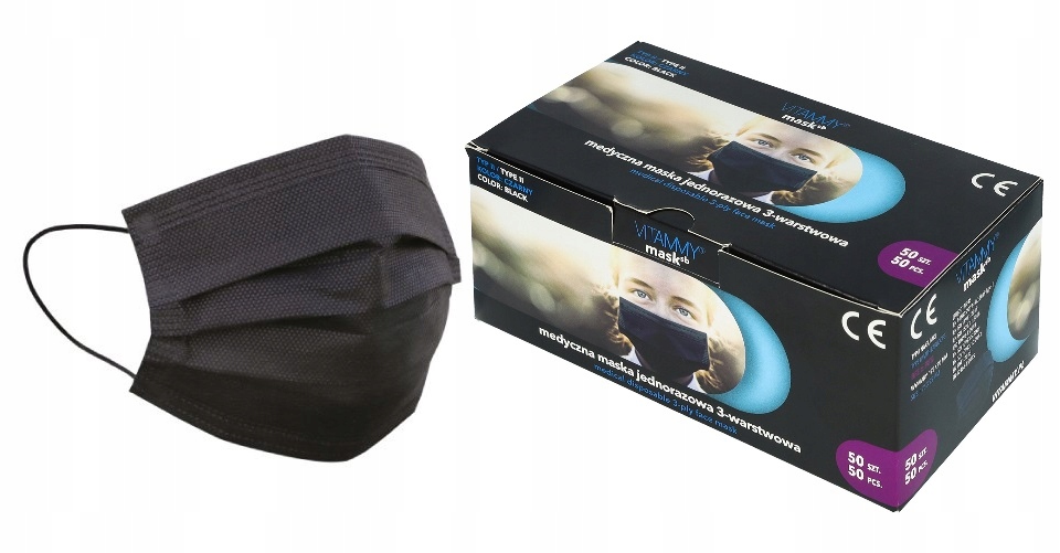 Maska Chirurgiczna Ochronna Jednorazowa czarna 50
