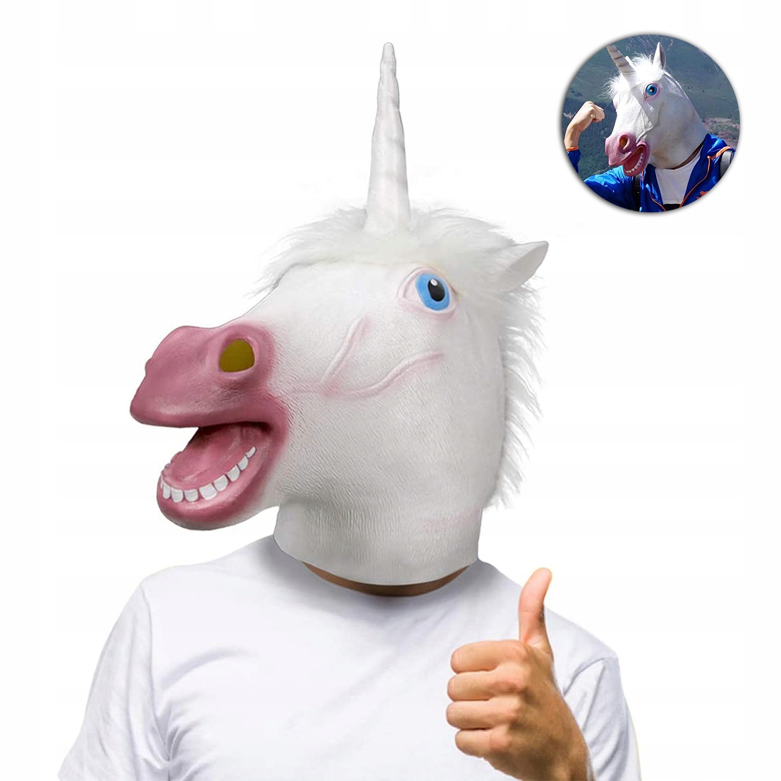 Maska Konia Głowa Lateksowa Biała Na Impreze