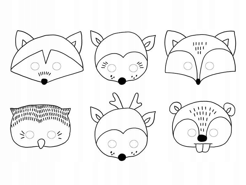 Maski Woodland do pokolorowania Zwierzęta -6szt!