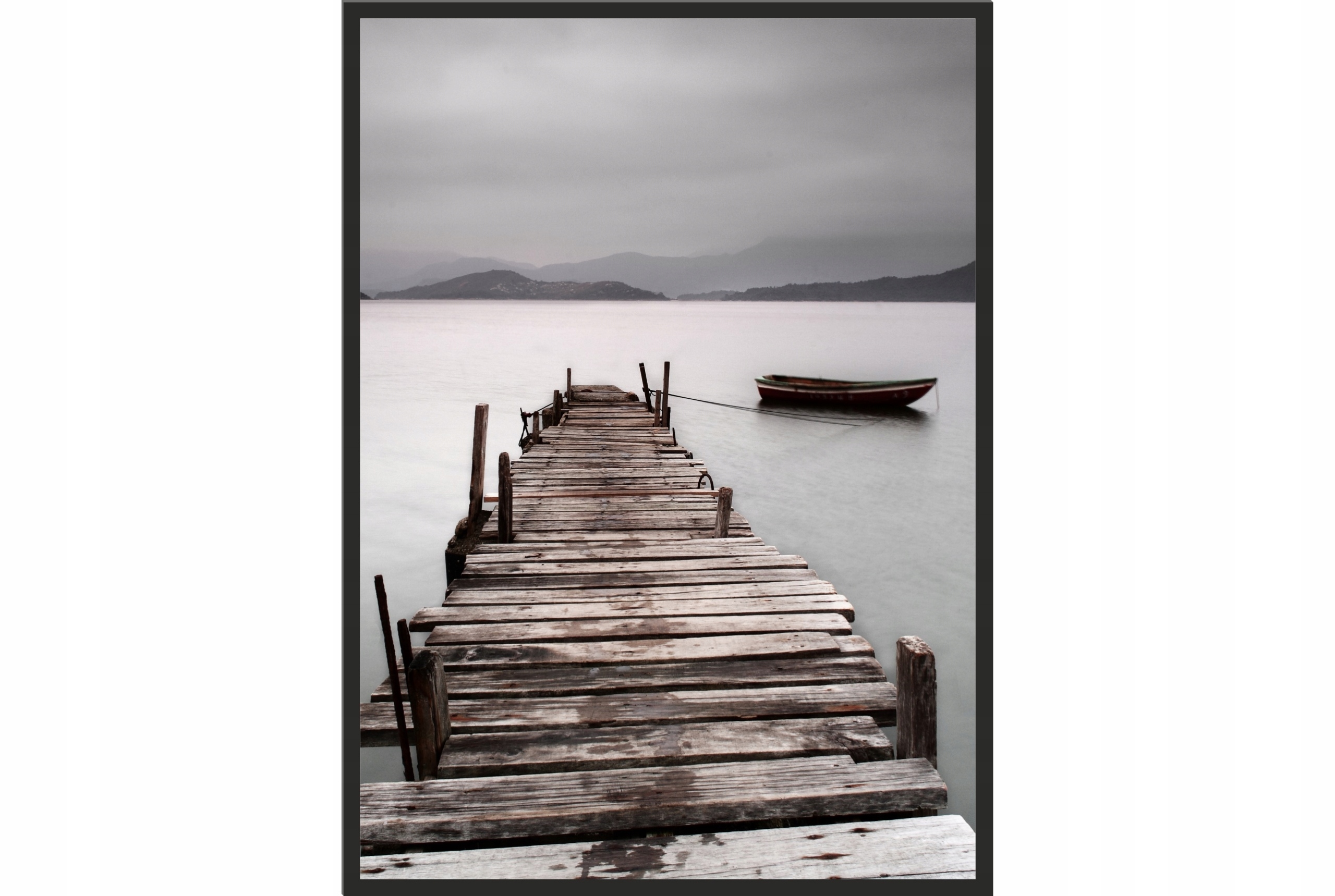 Obraz plakat 40x30 jezioro łódka pomost krajobraz