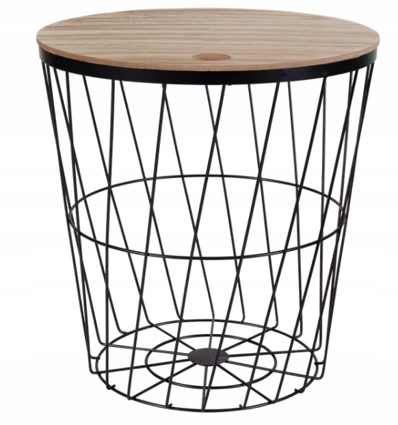 Stolik Metalowy Kawowy Kosz Druciany Czarny Loft