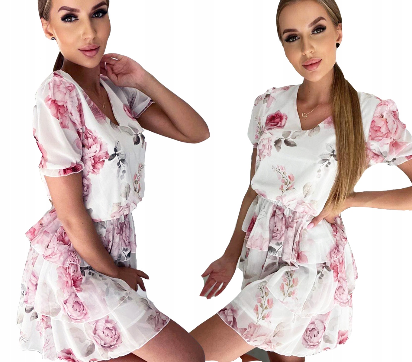 Sukienka elegancka zwiewna falbany kwiaty wesele V