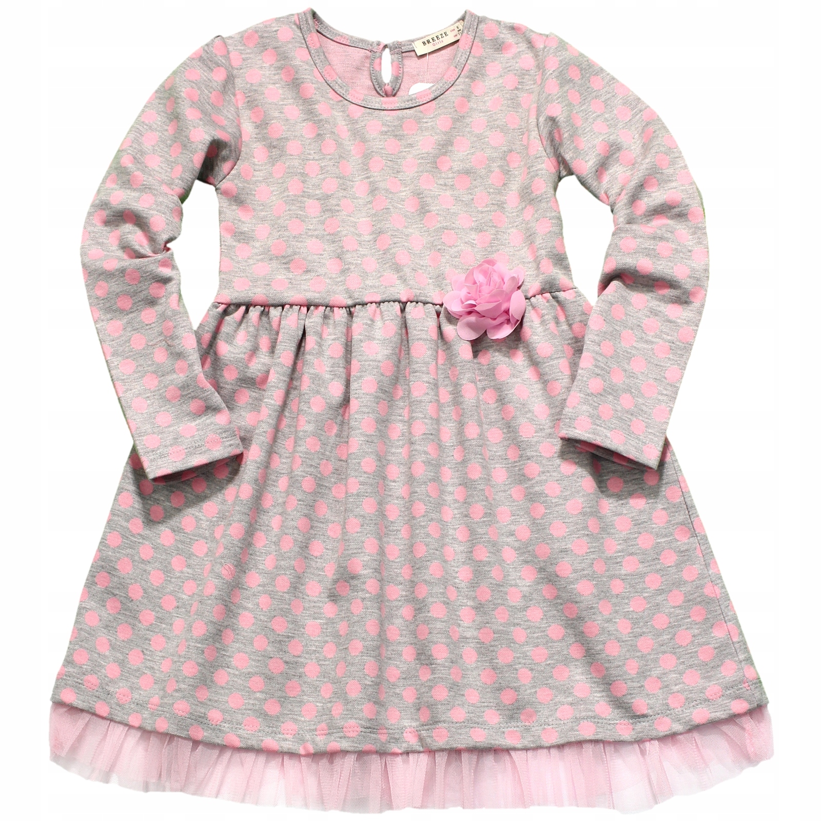 Sukienka W Groszki Tiul Kwiatek Rękaw 116