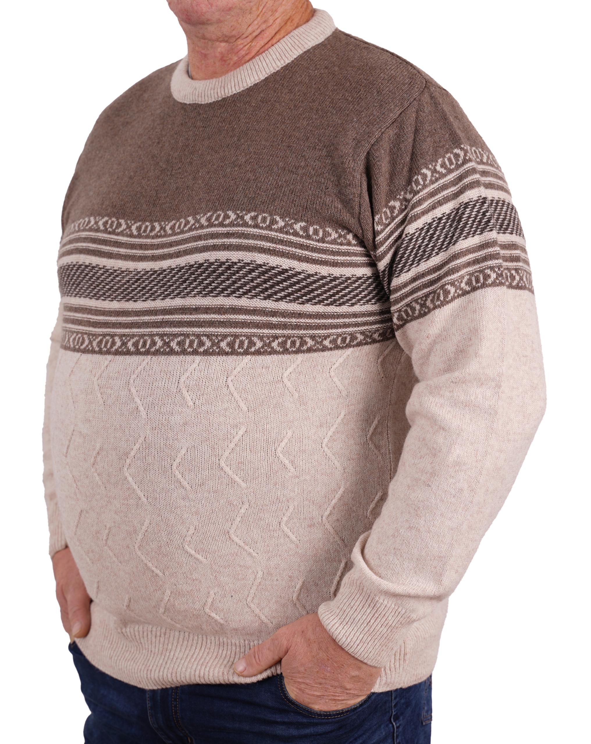 Sweter Męski Wełniany Beżowy Brąz Ciepły Duży 2XL