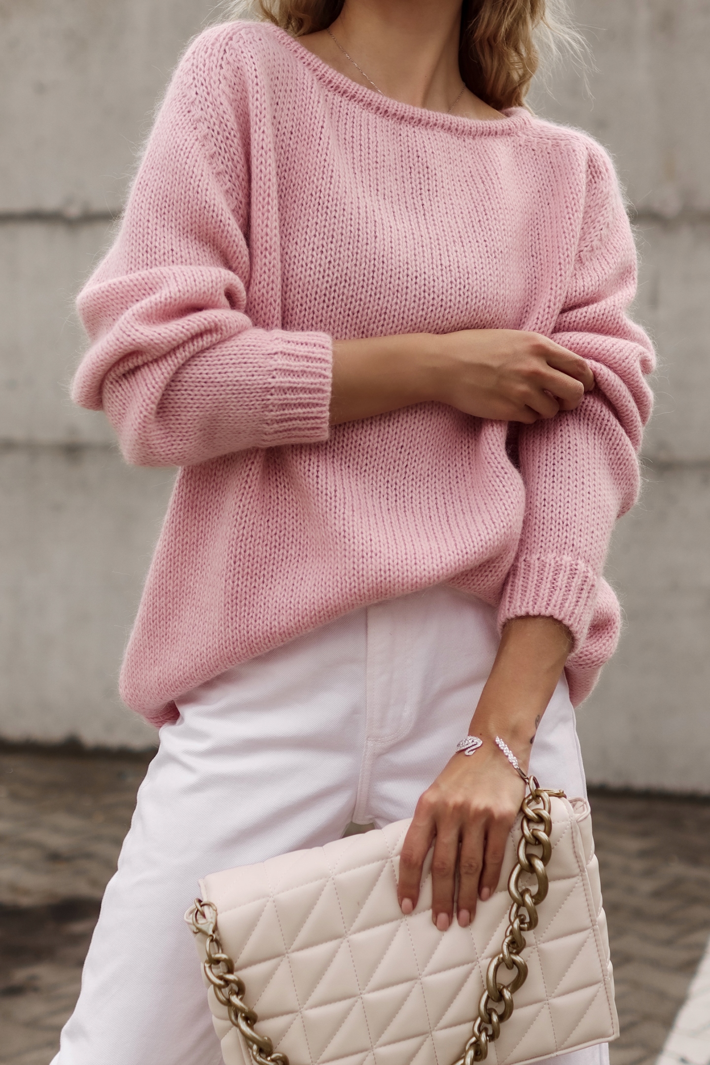 Sweter Wełniany Moher Jasny Róż Premium