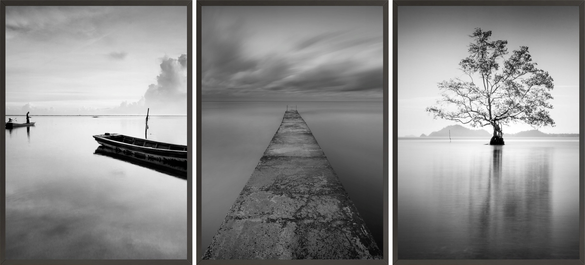Zestaw Plakatów Ramki 3x 33x43 drzewo łódź pomos