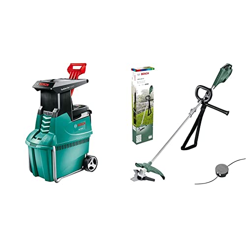- Bosch Häcksler AXT 25 TC (2500 W, Fangbox 53 Liter, Schneidekapazität: Ø 45 mm) & Bosch Elektro Freischneider Motorsense AFS 23-37 (950 W, SchnittkreisØ: 23 cm (Messer), 37 cm (Faden), Schwarz/Grün