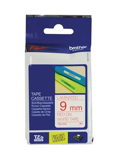 - Brother Original P-touch Schriftband TZe-222 9 mm, rot auf weiß (kompatibel mit Brother P-touch H100LB/R, H105, E100/VP, D200/BW/VP, D210/VP)