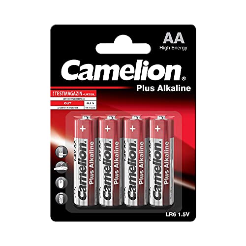 - Camelion 11000406 - Batterien Plus Alkaline High Energy AA / LR6, 4 Stück, Kapazität 2700 mAh, leistungsstarke Einwegbatterien für elektronische Geräte zur optimalen Energieversorgung