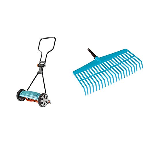- Gardena Classic Spindelmäher 400: Handrasenmäher mit 40cm Arbeitsbreite & combisystem-Rechenbesen: Handlicher Zinkenbesen zum Zusammenfegen von Laub und Grasschnitt, Arbeitsbreite 43 cm (3101-20)
