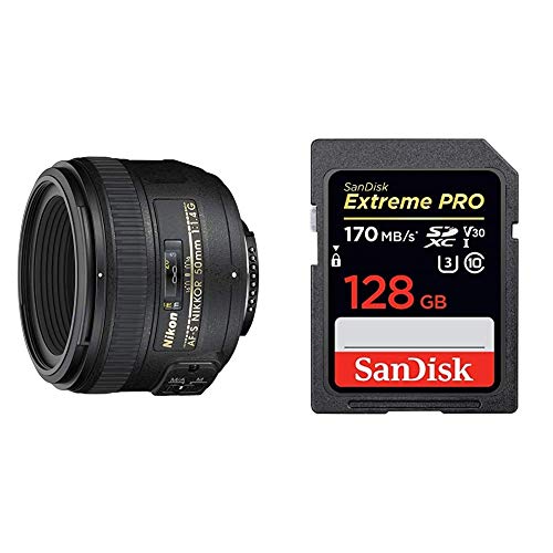 - Nikon AF-S Nikkor 50mm 1:1,4G Objektiv (58mm Filtergewinde) schwarz & SanDisk Extreme Pro SDXC UHS-I Speicherkarte 128GB (Übertragungsgeschwindigkeit 170 MB/s, U3, 4K-UHD-Videos, temperaturbeständig)